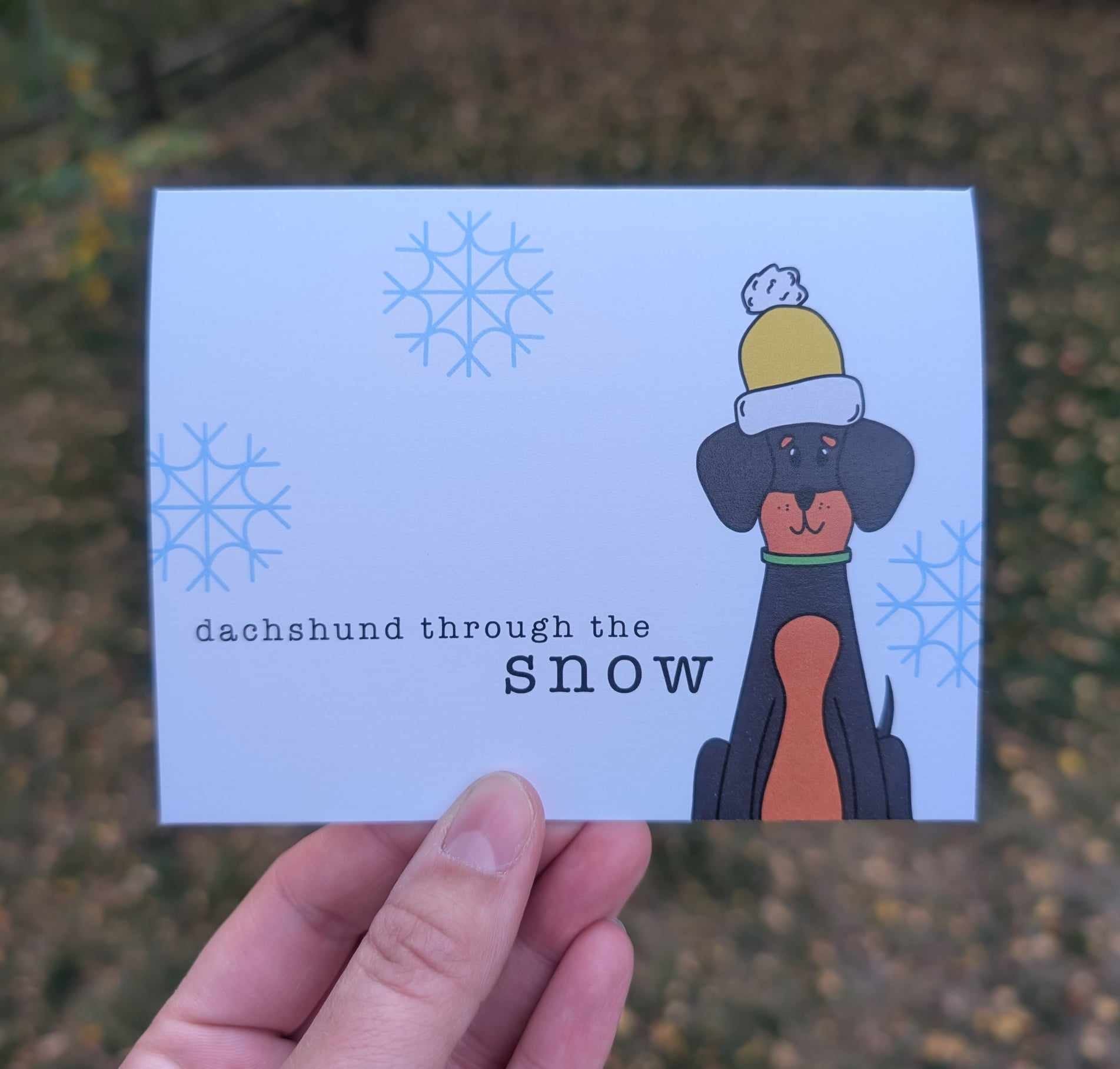 Dachshund Through the Snow Card VendorStacy Hutchison Share WhatsApp Deel X Pin it Messenger Email Product form Hand designed and digitally printed 5.25"x4" holiday card. Comes with a white envelope. Read more Hand designed and digitally printed 5.25"x4" holiday card. Comes with a white envelope. Read more 5 in stock $5.00 Quantity Add to cart This item is a recurring or deferred purchase. By continuing, I agree to the cancellation policy and authorize you to charge my payment method at the prices, frequency and dates listed on this page until my order is fulfilled or I cancel, if permitted.